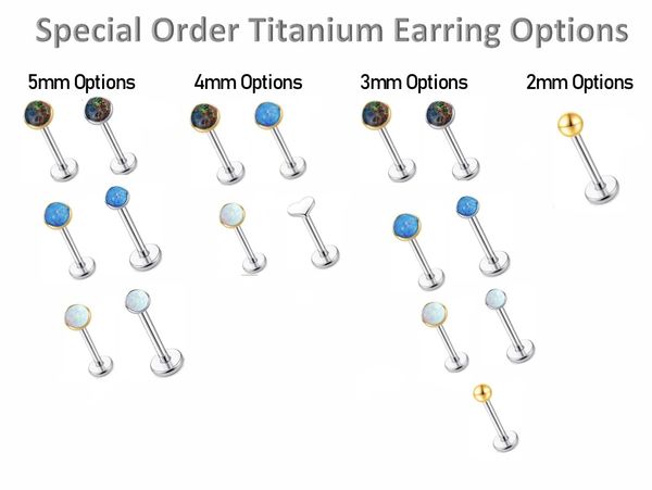 *14k gold jewelry and other titanium jewelry options are available by special order only and require payment for the jewelry before ordering, please inquire for more information